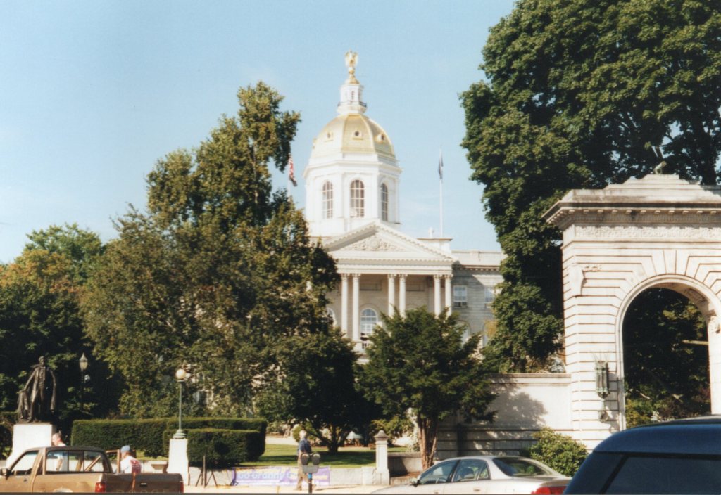 This time we went to the capital of New Hampshire, a small town called Concord, but with a large capitol with a golden dome. Inside there is a lot on display from the Civil War, weapons, uniforms, regimental flags, a picture of someone who fell at Gettysburg. On into the mountains, which are called the White Mountains here and are a mixture of low mountain ranges and the Alps, often with deciduous forests in the early Indian summer. Past Lake Winnipesaukee, the name comes from an ancient Indian tribe. The lake is quite large, an old steamer sails on it, the Washington.